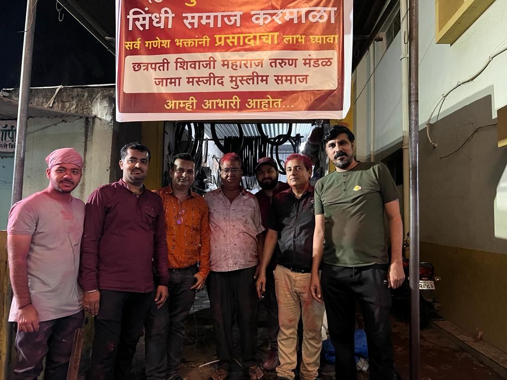 करमाळा शहरातील गणेश मंडळ कार्यकर्त भक्ताना महाप्रसाद देऊन मानवता धर्म पाळणारी सिंधी समाजाची भक्ती