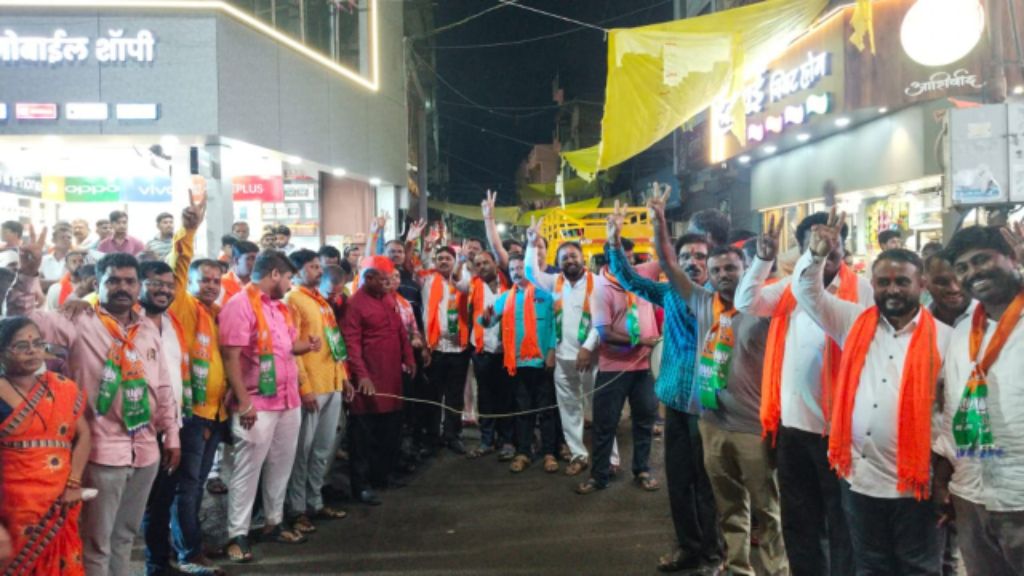 करमाळा प्रतिनिधी :- नरेंद्रजी मोदी तिसऱ्यांदा पंतप्रधानपदी विराजमान झाल्याबद्दल करमाळ्यात भाजपा जिल्हा सरचिटणीस गणेश चिवटे यांच्या नेतृत्वात भाजपा पदाधिकारी व कार्यकर्त्यांनी मोठा जल्लोष साजरा केला.पंतप्रधान मोदींच्या शपथविधीसोबतच भाजपा व एनडीएमधील घटकपक्षातील ६३ सदस्यांनी मंत्रिपदाची शपथ घेतली आहे. महाराष्ट्रातून नितीन गडकरी,मुरलीधर मोहोळ,पीयूष गोयल,रक्षा खडसे,प्रतापराव जाधव, रामदास आठवले यांचा मंत्रिमंडळात समावेश झाला आहे.पंतप्रधान नरेंद्रजी मोदींनी देशाच्या इतिहासात सलग तीन वेळा पंतप्रधान होण्याचा बहुमान काल मिळवला व देशात सलग तिसऱ्यांदा देशात भाजपा नेतृत्वाचे मोदी 3.O सरकार सत्तेत आले. यानिमित्त करमाळा येथे भाजपा कार्यकर्त्यांनी श्रीराम चौकात एकत्र जमून फटाके फोडले, बँजोच्या गजरात ठेका धरत एकमेकांना साखर आणि पेढे वाटून मोठ्या उत्साहात जल्लोष केला.यावेळी जिल्हा उपाध्यक्ष पै.अफसर जाधव,तालुकाध्यक्ष रामभाऊ ढाणे, शहराध्यक्ष जगदीश अगरवाल, जेष्ठ नेते राधेश्याम देवी, महेश परदेशी, संजय आण्णा घोरपडे ,नाना मोरे,सोशल मीडिया प्रमुख नितीन झिंजाडे,अमोल पवार,जयंत काळे पाटील,गणेश माने, कपिल मंडलिक, आण्णा पडवळे, किरण शिंदे, सोमनाथ घाडगे, पत्रकार दिनेश मडके, आजिनाथ कोळेकर वस्ताद,किरण बागल ,दिपक गायकवाड, विश्वजीत परदेशी, चरणसिंग परदेशी, वैभव आहेर, संजय जमदाडे, सचिन चव्हाण,मच्छिंद्र हाके, नवनाथ खाडे,नितीन निकम, हर्षद गाडे, राम परदेशी, राजश्री खाडे, संगीता नष्टे,पूजा माने, जयश्री वाघमारे,शरद कोकीळ,विनोद इंदलकर, महादेव गोसावी, संतोष जवकर आदी पदाधिकारी कार्यकर्ते उपस्थित होते.