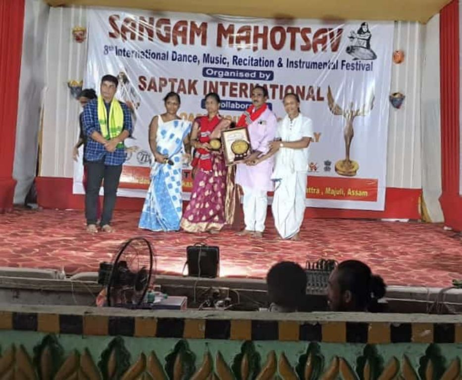 करमाळा प्रतिनिधी: आसाम मधील माजुली जिल्ह्यात सप्तक इंटरनॅशनल या संस्थेने आयोजित केलेल्या आंतरराष्ट्रीय संगम महोत्सवात सुर ताल संगीत विद्यालयाचे प्राचार्य बाळासाहेब नरारे यांना मानाचा समजला जाणारा “संगम सुर सरस्वती अवार्ड” संस्थेचे संस्थापक अध्यक्ष हलीराम बोराह आणि मोन बोराह यांच्या हस्ते प्रधान करण्यात आला. माजूली हे जगातील एकमेव असणारे रिव्हर आयर्लंड आहे. या महोत्सवाचे वर्षातून एकच वेळा तिथे आयोजन केले जाते.
