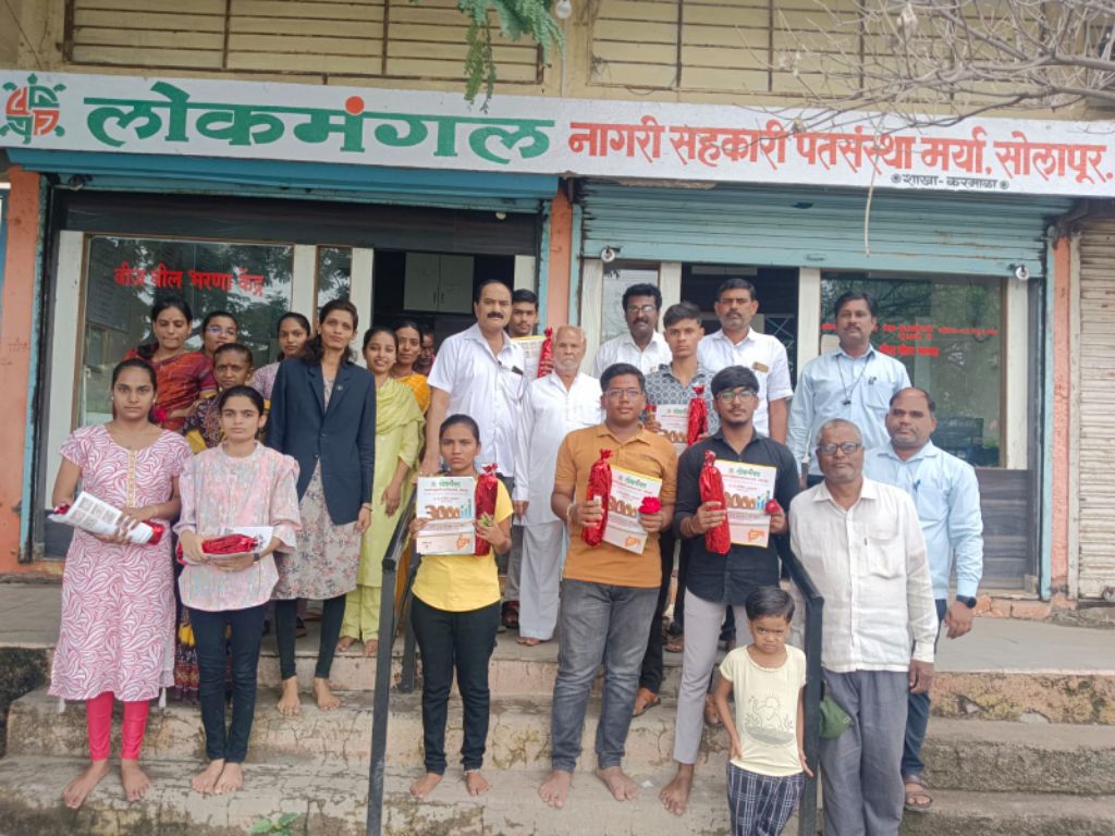 लोकमंगल नागरी सहकारी पतसंस्था मर्या. सोलापूर शाखा करमाळा यांच्या वतीन दहावी व बारावी परीक्षेमध्ये यश मिळवलेल्या गुणवंत विद्यार्थ्यांचा सत्कार
