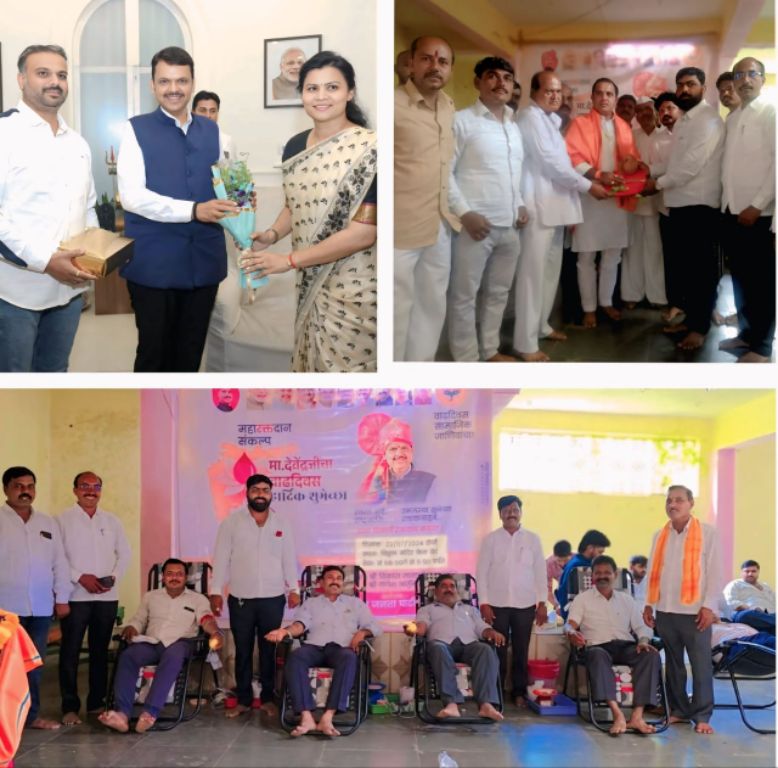 तसेच कार्यकर्त्याची जाण असणारा नेता म्हणजे देवेंद्रजी असं खंबीर नेतृत्व भाजपला मिळालेले आहे. मुख्यमंत्री देवेंद्र फडवणीस यांचा वाढदिवस करमाळा भाजप ग्रामीण मंडळाच्यावतीने उत्स्फूर्तपणे रक्तदान करून साजरा करण्यात आला. रक्तदान करणाऱ्या सर्व रक्तदात्यांना प्रमाणपत्र व पाण्याचा जार भेट म्हणून देण्यात आले. रक्तदान शिबिरात योगदान देणारे रक्तदाते व कार्यक्रम यशस्वी करण्यासाठी सहकारी पदाधिकारी मित्र ज्ञात अज्ञात कार्यकर्ते सर्वांचे मनस्वी आभार करमाळा भाजप ग्रामीण मंडल तालुका अध्यक्ष सचिन ( बापू ) पिसाळ यांनी मानले.