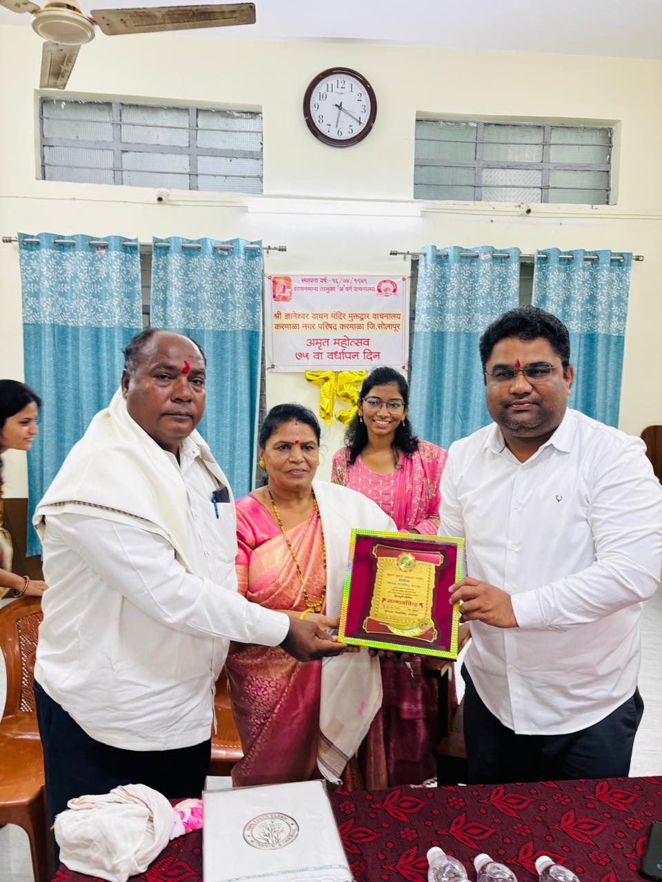 करमाळा, प्रतिनिधी दि. १- करमाळा नगरपरिषदेतील ३२ वर्षांच्या प्रदीर्घ सेवेनंतर निवृत्त होत असलेल्या कैकाडी समाज संघटनेच्या महिला आघाडीच्या राज्य प्रदेश अध्यक्षा, एकलव्य प्राथमिक आश्रमशाळेच्या उपाध्यक्षा स्वातीताई माने यांचा सेवापुर्ती सन्मान सोहळा मोठ्या उत्साहात संपन्न झाला.हॉटेल स्वराज येथे आयोजित या सोहळ्याच्या अध्यक्षस्थानी ग्रामसुधार समितीचे अध्यक्ष ह. भ. प. ऍड. बाबुराव हिरडे होते. याप्रसंगी जेष्ठ सामाजिक कार्यकर्ते रामकृष्ण माने, जेष्ठ नेते विद्या विकास मंडळाचे सचिव विलासराव घुमरे, यशकल्याणी सेवाभावी संस्थेचे अध्यक्ष प्रा. गणेश करे – पाटील, सामाजिक कार्यकर्ते सुभाषराव जाधव, पत्रकार विवेक येवले, जेष्ठ नेते अमोद संचेती, माजी नगराध्यक्षा पुष्पा फंड, विद्या चिवटे, डॉ. रोहन जाधव – पाटील, सेवानिवृत्त समाज कल्याण अधिकारी गोपाळराव सावंत यांची प्रमुख उपस्थिती होती.सुरुवातीला क्रांतिज्योती सावित्रीबाई फुले यांच्या प्रतिमेचे पूजन करण्यात आले. त्यानंतर मान्यवरांच्या हस्ते सेवा निवृत्ती निमित्ताने माने यांचा सन्मान करण्यात आला.याप्रसंगी समाजातील तळागाळातील नागरिकांना विकासाच्या प्रवाहात आणण्यासाठी माने उभयंतानी दिलेले योगदान उल्लेखनीय आहे. भविष्यकाळात त्यांच्या सामाजिक कार्यात नेहमीच सहकार्य राहील. समाजाच्या हितासाठी केलेले कार्य स्मरणात राहणारे असते. असे मत जेष्ठ नेते विद्या विकास मंडळाचे सचिव विलासराव घुमरे यांनी व्यक्त केले.यावेळी बोलताना ह. भ. प. ऍड. हिरडे यांनी, इतरांच्या हितासाठी परोपकारी वृत्तीने कार्यरत राहणारी जी मोजकी माणसं आहेत त्यामध्ये माने दांपत्याचा समावेश होतो. उपेक्षित, वंचित घटकाच्या उन्नतीसाठी त्यांचे असणारे कार्य प्रभावी आहे. असे सांगितले. तर करे – पाटील यांनी जीवनाच्या प्रवासात समाजातील गरजू घटकांना न्याय मिळवून देतानाच त्यांना आनंद देण्याचे कार्य बहुमोल आहे. असे स्पष्ट केले. याप्रसंगी येवले, प्रा. अर्जुन जाधव, स्वरूपचंद्र गायकवाड, डॉ. सुनीता दोशी, मंजिरी जोशी, माया भागवत, माजी नगरसेविका स्वाती फंड, सुहास ओहोळ, नंदकुमार जाधव, प्रियंका गायकवाड यांनी उपस्थितांच्या वतीने शुभेच्छा व्यक्त केल्या. यावेळी विविध क्षेत्रातील प्रतिनिधीनी माने दांपत्याचा सन्मान केला.