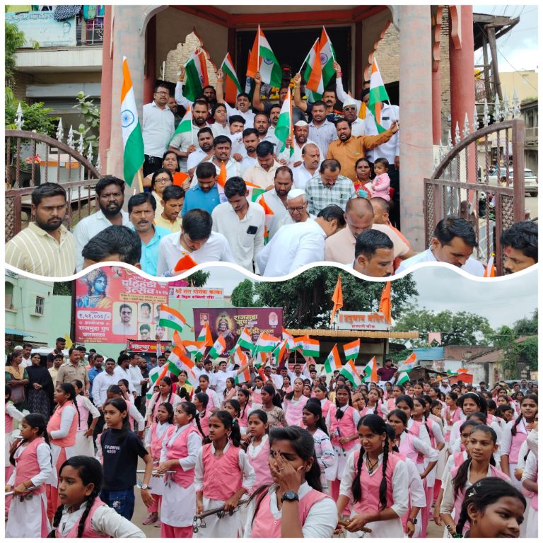 या रॅली मार्गातील महापुरुष भारतरत्न डॉ. बाबासाहेब आंबेडकर, लोकशाहीर अण्णाभाऊ साठे, छत्रपती शिवाजी महाराज यांच्या पुतळ्यांना पुष्पहार अर्पण करून अभिवादन करण्यात आले तसेच “भारत माता की जय”, “वंदे मातरम्”, “जय भवानी जय शिवाजी” अशा घोषणांनी वातावरण दुमदुमून टाकले. या रॅलीत शहरातील महिला व युवकांसोबत नागरिकांचा उत्स्फूर्त सहभाग दिसून आला. या रॅलीमध्ये विशेष आकर्षण ठरले ते कन्या प्रशालेच्या विद्यार्थिनींनी सांस्कृतिक पध्दतीने केलेले लेझिम सादरीकरणाने उपस्थितांचे मन जिंकले.