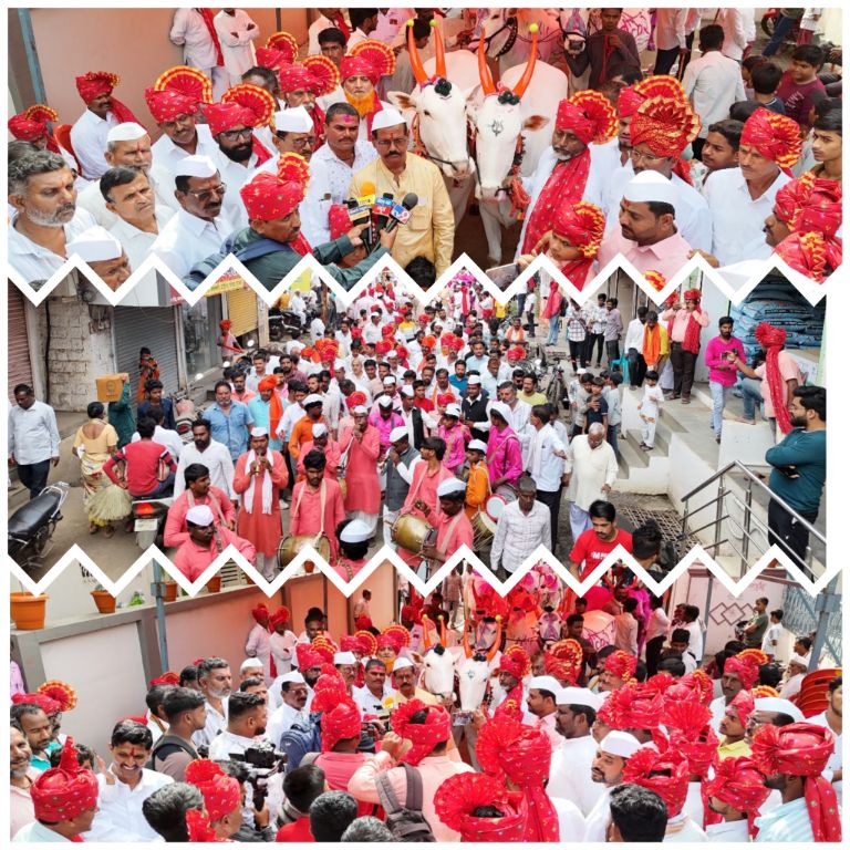 करमाळा प्रतिनिधी- करमाळा येथील सावंत कुटुंबीयांकडून सालाबादप्रमाणे परंपरा कायम राखुन मुक्या प्राण्यांवर कृतज्ञता व्यक्त करुन बैलपोळा उत्साहात साजरा करण्यात आला आहे ग्रामीण महाराष्ट्राच्या संस्कृतीचं आणि परंपरेचा उत्सव असलेला बैलपोळा हा सण आधुनिक यांत्रिकीकरण आणि खर्चिक पालनपोषण यामुळे केवळ नावापुरताच राहीला असला तरी करमाळा शहरातील सावंत कुटुंबाकडून दरवर्षी जिवंत बैल जोड्या विकत घेऊन बैलपोळ्याची परंपरा कायम राखली आहे. यंदाच्या वर्षी सावंत कुटुंबाकडून सात बैलजोड्या विकत घेऊन बैलपोळा उत्साहात साजरा करण्यात आला. बैल पोळ्याच्या आदल्या दिवशी या बैलांचे खांदे गरम पाण्याने धुवून हळदीने खांदे मळणी करण्यात आली. पोळ्या दिवशी सकाळीच या पांढऱ्याशुभ्र बैलांना स्वच्छ अंघोळ घालून शिंगांना सोनेरी रंग लावला गेला. बैलांच्या अंगावर गुलाल टाकून शिंगांना बेगड लावल्या गेल्या. आणि नंतर सावंत यांच्या निवासस्थानापासून या सजवलेल्या बैलांची ढोल ताशा बँड पथक, संबळ आणि हलग्यांच्या कडकडात भव्य मिरवणूक शहरातून काढण्यात आली.या मिरवणुकीत सावंत यांच्या नातेवाईक आणि इष्टमित्रांसह संपूर्ण सावंत गल्लीतील अठरापगड समाज सामील झाला. सावंत गल्लीतील मारुती मंदिरापासून निघालेली ही मिरवणूक फुलसौंदर चौक-जय महाराष्ट्र चौक -गुजर गल्ली-छत्रपती शिवाजी महाराज चौक-दत्तपेठ – सुभाष चौक – किल्ला वेस, मारुती मंदिर आदी प्रमुख मार्गांवरून जात असताना शहरातील महीला भगिनींनी या बैलजोड्यांना पुरणपोळीचा नैवेद्य दिला. सायंकाळी साडेपाच च्या सुमारास ही मिरवणूक पुन्हा सावंत यांच्या निवासस्थानासमोर आली. या ठिकाणी या बैलांचे पारंपारिक पद्धतीने लग्न लावले गेले. लग्नासह विविध पारंपारिक सोपस्कार पूर्ण केल्यानंतर सालाबाद प्रमाणे उपस्थित सर्वांसाठी सावंत कुटुंबीयांकडून पुरणपोळीच्या जेवणाचा बेत झाला.बैलपोळ्याच्या या संपूर्ण सोहळ्यात सावंत कुटुंबातील विठ्ठल आप्पा सावंत, गोपाळ बापू सावंत, दादासाहेब सावंत, भगवान नाना सावंत, ॲड. राहुल सावंत, माजी नगरसेवक संजय (पप्पू) सावंत, सुनील बापू सावंत, जनावरांचे व्यापारी किरण सावंत यांच्यासह सचिन गायकवाड, दादा इंदलकर, गोविंद किरवे, फारूख जमादार, दिपक सुपेकर, अल्लाउद्दिन शेख, हुमरान मुलाणी, सरपंच चंद्रकांत काळे, सरपंच दौलत वाघमोडे, गणेश मुरूमकर, चेअरमन विलास दळवी, विलास नलवडे, सरपंच धनंजय शिंदे, अशोक दोशी, व्यापारी संतोष गाडे (कुर्डू), सारंग ढवाण (काष्टी), सारंग भोसले (काष्टी), दासा मोडाळे (राशीन), मच्छिंद्र काळे (राशीन), संदीप जाधव (पाडळी), शिवाजी झिपे पेडगाव, जनाबापू कायगुडे पेडगाव, बाळू काटकर पेडगाव, विशाल गवळी पेडगाव, तुकाराम बालसिंग वाळकी, दामू थोर