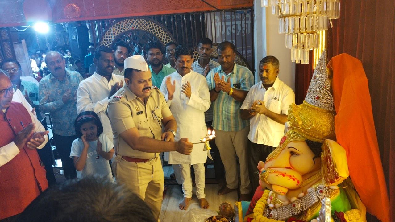 छत्रपती शिवाजी तरुण मंडळाच्या श्री गणेशाची आरती करण्यात आली. यावेळी पुढे बोलताना रणजीत माने साहेब म्हणाले की छत्रपती शिवाजी महाराज तरुण मंडळ हे खऱ्या अर्थाने सामाजिक धार्मिक तसेच सामाजिक समरसता जपणारे मंडळा असून या मंडळाची ऐतिहासिक परंपरा असून 78 वर्षाची यशस्वी परंपरा असल्याचे त्यांनी सांगितले. गणेश मंडळाला डॉल्बी लावू नका अशी सांगावे लागते परंतु छत्रपती शिवाजी तरुण मंडळ यांनी अद्याप पर्यंत डॉल्बी न लावता पारंपरिक वाद्य वाजून मिरवणूक काढली आहे खऱ्या अर्थाने हे मंडळ एक आदर्श मंडळ असून या मंडळाचा आदर्श घेणे काळाची गरज असल्याचे रणजीत माने साहेब यांनी सांगितले.: यावेळी मनोगत व्यक्त करताना सावंत गटाचे नेते सुनील बापू सावंत यांनी छत्रपती शिवाजी तरुण मंडळाच्या कार्याचा लेखाजोखा सर्वांसमोर मांडला. गणेशोत्सवा बरोबरच या मंडळाचे वतीने रक्तदान शिबिर सर्व रोग निदान शिबिर अशा पद्धतीचे समाज उपयोगी उपक्रम राबवत असून या मंडळामध्ये सर्व जाती धर्माची लोक गुण्या गोविंदाने काम करत असल्याचे त्यांनी सांगितले हे मंडळ एक कुटुंब असल्याचे त्यांनी आवर्जून सांगितले मिरवणुकीमध्ये सुद्धा पोलिसांना कुठलाही प्रकारचा त्रास न होता आम्ही आमची मिरवणूक पोलीस बंदोबस्त शिवाय यशस्वीपणे काढू शकतो असे आमचे शिस्तप्रिय मंडळ असल्याचे त्यांनी सांगितले.