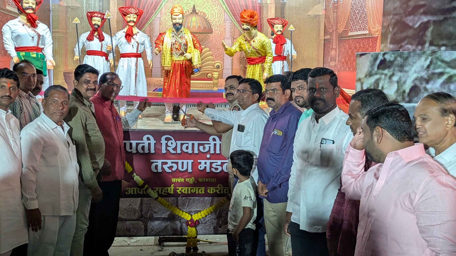 करमाळा प्रतिनिधी : – देव देश धर्म ऐतिहासिक याबरोबर सर्वधर्म समभावाचा वसा जपत समाज उपयोगी उपक्रम राबवण्याचा छत्रपती शिवाजी महाराज तरुण मंडळ, सावंत गल्ली, करमाळा यांचे कार्य कोतुकास्पद आहे असे करमाळ्याचे कर्तव्यदक्ष पोलीस निरीक्षक रणजीत माने साहेब यांनी व्यक्त केले. छत्रपती शिवाजी महाराज तरुण मंडळ यांनी गणेशोत्सवानिमित्त आरस म्हणून ऐतिहासिक हिरकणीचे शोर्य देखावा केला असून या देखाव्याचे उद्घाटन पोलीस निरीक्षक रणजीत माने यांच्या शुभहस्ते उपजिल्हा रुग्णालयाचे वैद्यकीय अधिकारी डॉ गजानन गुंजकर तालुका कृषी अधिकारी राजेंद्र नेटके, आदिनाथ चे संचालक डॉ. हरिदास केवारे ज्येष्ठ पत्रकार ॲड बाबुराव हिरडे संचालक डॉ हरिदास केवारे आशपाक सय्यद ,जयंत दळवी करमाळा डिजिटल मीडिया पत्रकार संपादक संघटनेचे तालुकाध्यक्ष पत्रकार दिनेश मडके, पत्रकार विशाल घोलप अशोक मुरूमकर, सिद्धार्थ वाघमारे विशाल परदेशी सरपंच भोजराज सुरवसे सरपंच भाऊसाहेब काळे सरपंच धनंजय शिंदे सरपंच दौलत वाघमोडे संचालक वालचंद्र रोडगे उपाध्यक्ष गजानन गावडे फारूख जमादार चेअरमन विलास दळवी विजय दोशी उत्कर्ष गांधी अशोक दोशी पिंटू शेठ कटारिया प्रदीप लुणिया अल्लाउद्दिन शेख अनिल माने हुमरान मुलाणी मान्यवर प्रतिष्ठित व्यापारी यांच्या उपस्थितीमध्ये संपन्न झाले.