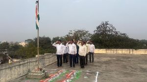 करमाळा प्रतिनिधी भारतीय प्रजासत्ताक दिनानिमित्त करमाळा कृषी उत्पन्न बाजार समितीचे मुख्य कार्यालयीन इमारतीच्या प्रांगणामध्ये बाजार समितीचे उपसभापती प्रतिनिधी , गटसचिवांचे मार्गदर्शक नेते श्री बबनराव मेहेर यांच्या शुभहस्ते ध्वज वंदन करण्यात आले .या प्रसंगी राष्ट्रपिता महात्मा गांधी व बाजार समितीचे संस्थापक माजी आमदार स्वातंत्र्य सैनिक देशभक्त कै . नामदेवरावजी जगताप यांच्या पूर्णाकृती पुतळ्यास पुष्पहार अर्पण करण्यात आला . यावेळी बाजार समितीचे सचिव विठ्ठल क्षीरसागर ,डीसीसी बँकेचे शाखाधिकारी अभयसिंह आवटे यांचे सह बाजार समिती व जिल्हा मध्यवर्ती बँकेचे अधिकारी व कर्मचारी उपस्थित होते .