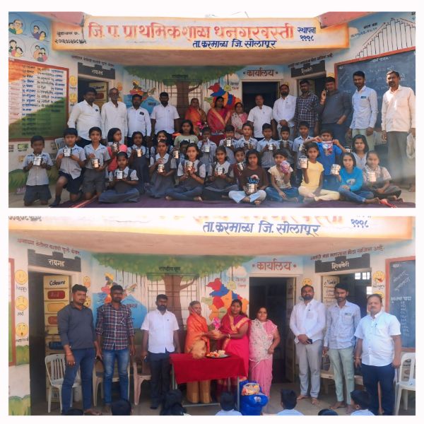 करमाळा प्रतिनिधी : समाजोपयोगी कार्याची परंपरा जपत येथील जि. प. प्राथमिक शाळा, धनगरवस्ती येथे वेन्नू व्यंकटेशा चॅरिटेबल ट्रस्ट व श्री तिरुपती बालाजी संस्थान मंदिर, रावगाव यांच्या संयुक्त विद्यमाने विद्यार्थ्यांना स्टीलचे जेवणाचे डबे वाटप करण्यात आले. या उपक्रमांतर्गत 30 विद्यार्थ्यांना डबे देण्यात आले.